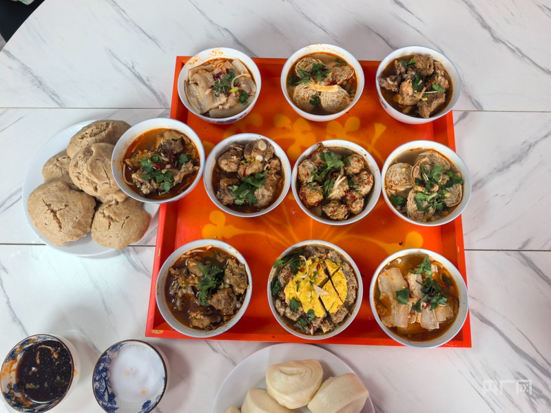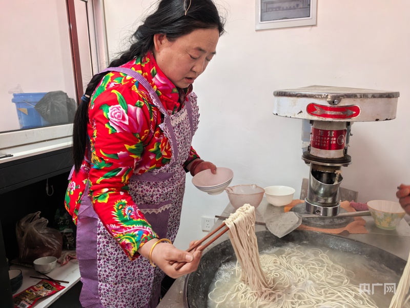 在忙碌的操作区,56岁的梁艳萍正利落地将一碗碗臊子面端到客人面前。她原是朱吊渠村的普通农妇,如今却成了“小厨作坊”的“技术骨干”。“真没想到,我做了半辈子的家常饭,现在不仅能挣钱,还能让外地人尝到咱们地道的环县味道。”她抹了抹额角的汗珠,笑容灿烂,“一个月能挣三千多块钱,还不耽误照顾家里,这在从前想都不敢想。”